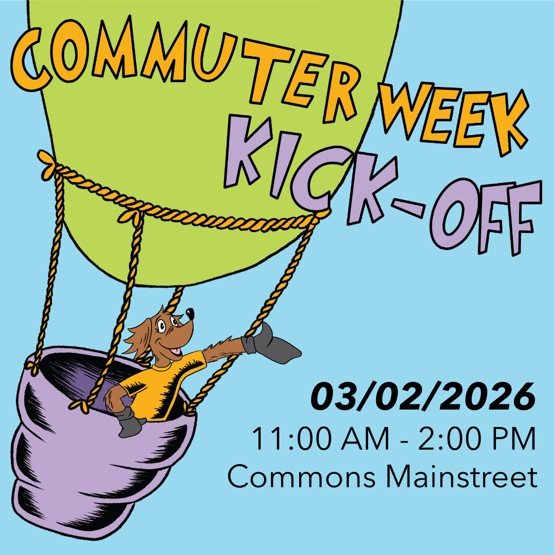 Let's have a wheely good week! Stop by to officially kick off Commuter Week with music, giveaways, and smoothie bikes — hop on, pedal, and power your own drink before heading to class.